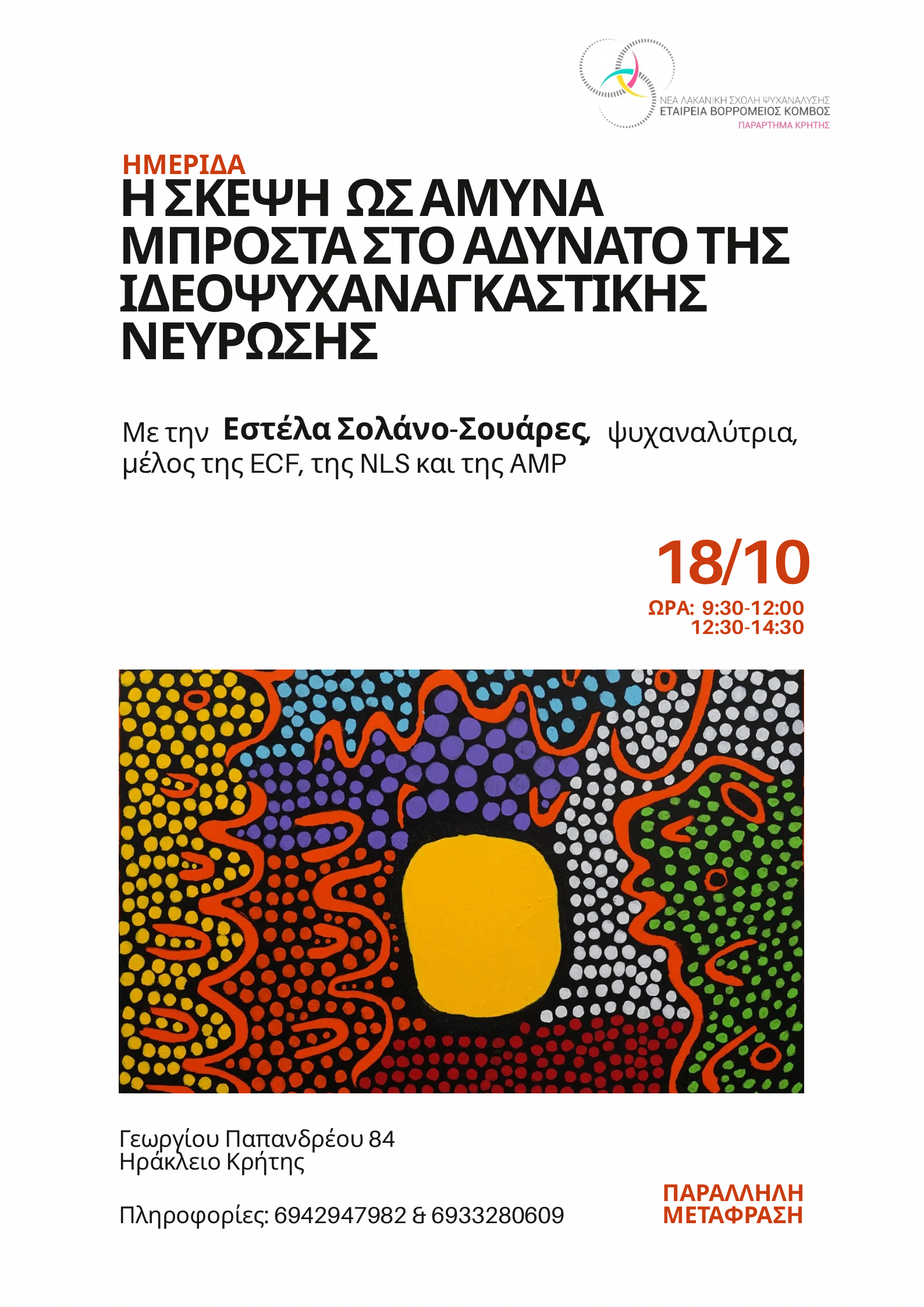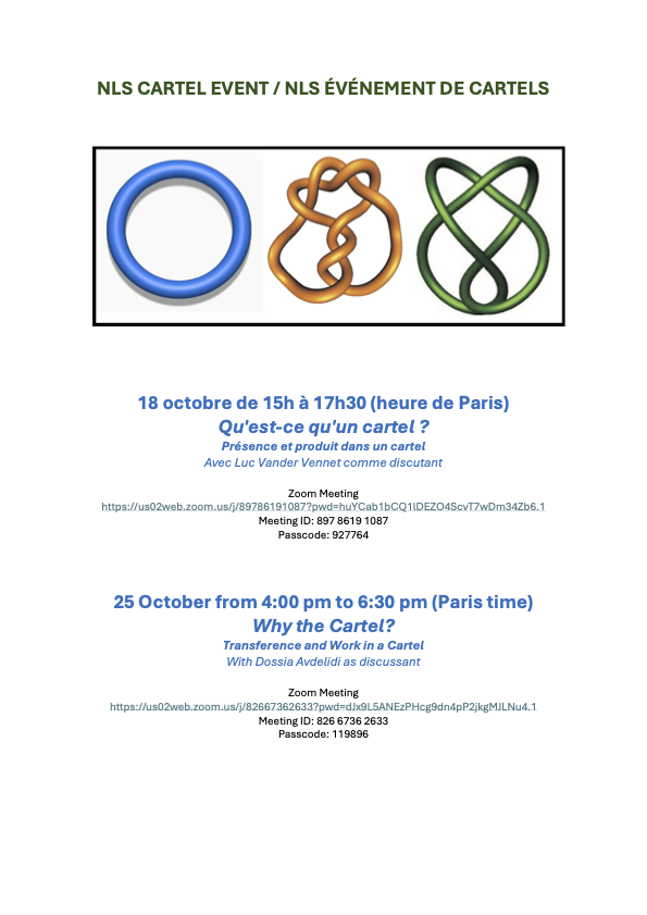 Société Noeud Borroméen de la NLS en Grèce 18 octobre, Héraklion-Crète La pensée comme défense face à l'impossible de la névrose obsessionnelle Avec Esthela Solano-Suarez